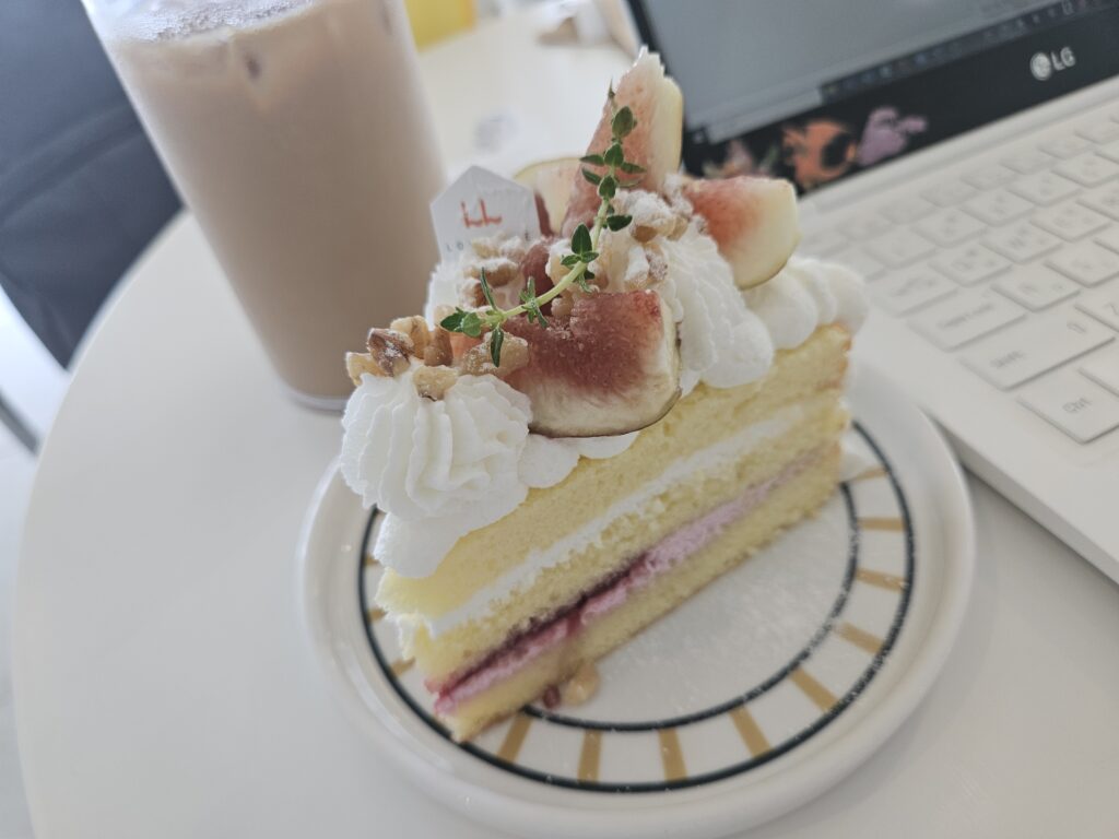 나는 우유케이크와 카페라떼를 사 먹었다. 우유케이크 위에 무화과가 많이 있어서 좋았다. 케이크의 우유크림이 부드럽고 맛있었다. 카페라떼는 맛은 무난했고 양이 많아서 좋았다.
