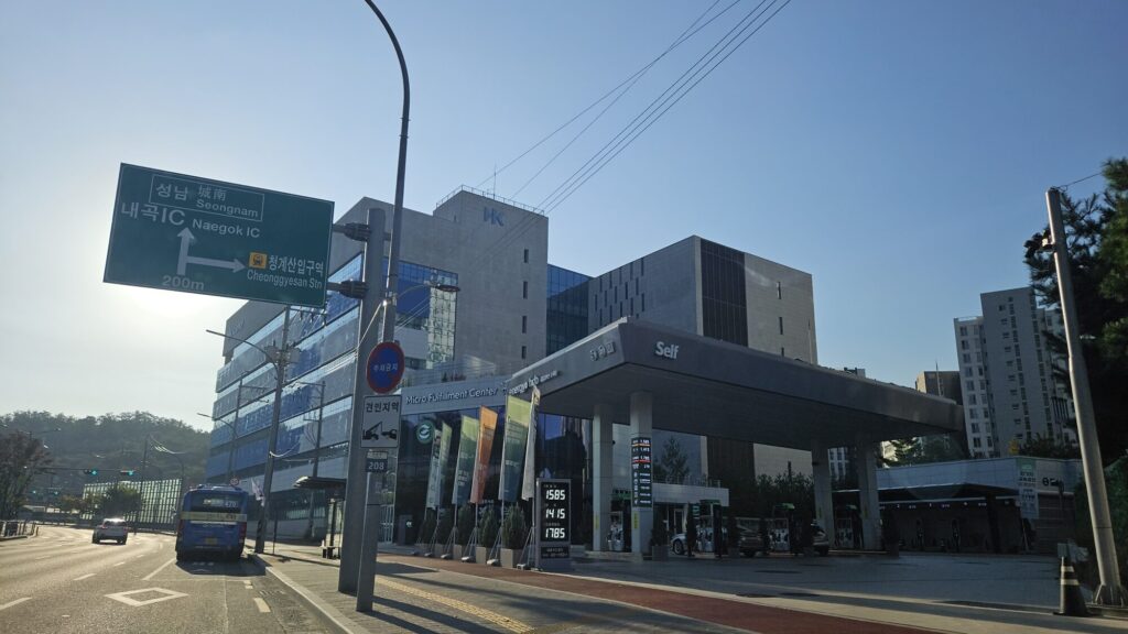 두 주유소는 큰길을 끼고 각각 다른 방향에 위치해 있다. 두 곳의 가격이 비슷해서 어느 한 곳을 정해 놓고 가기보다는 둘 중 내 자동차가 가는 방향의 도로에 인접한 곳으로 간다. GS 에너지플러스허브 내곡이 좀더 최근에 지어진 주유소인 것 같다.
