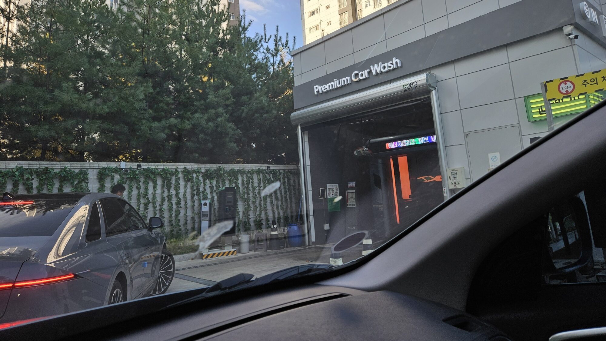1등을 노리기 위해 9시 정각 오픈시간에 딱 맞춰 주유를 끝마쳤는데,, 이미 앞에 더 빠른 세차차량이 먼저 와 있었다.