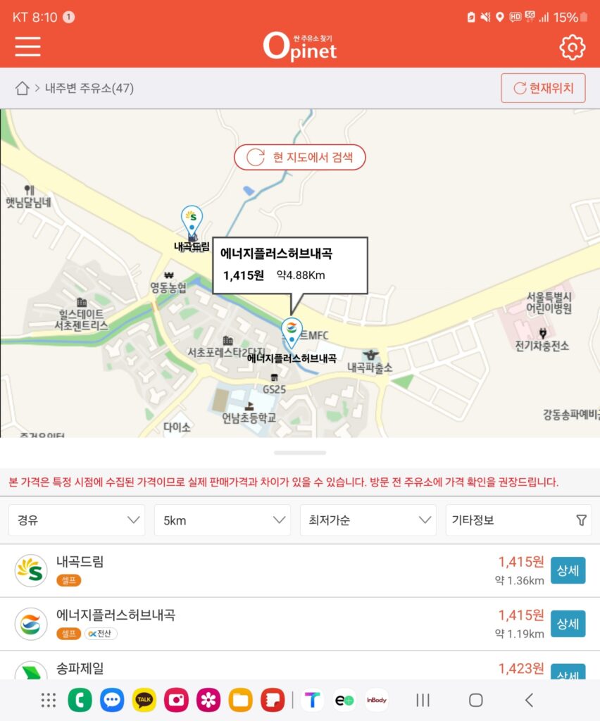 내가 자주 찾는 주유소는 에너지플러스허브 내곡(GS), 내곡드림(S-OIL)이다.