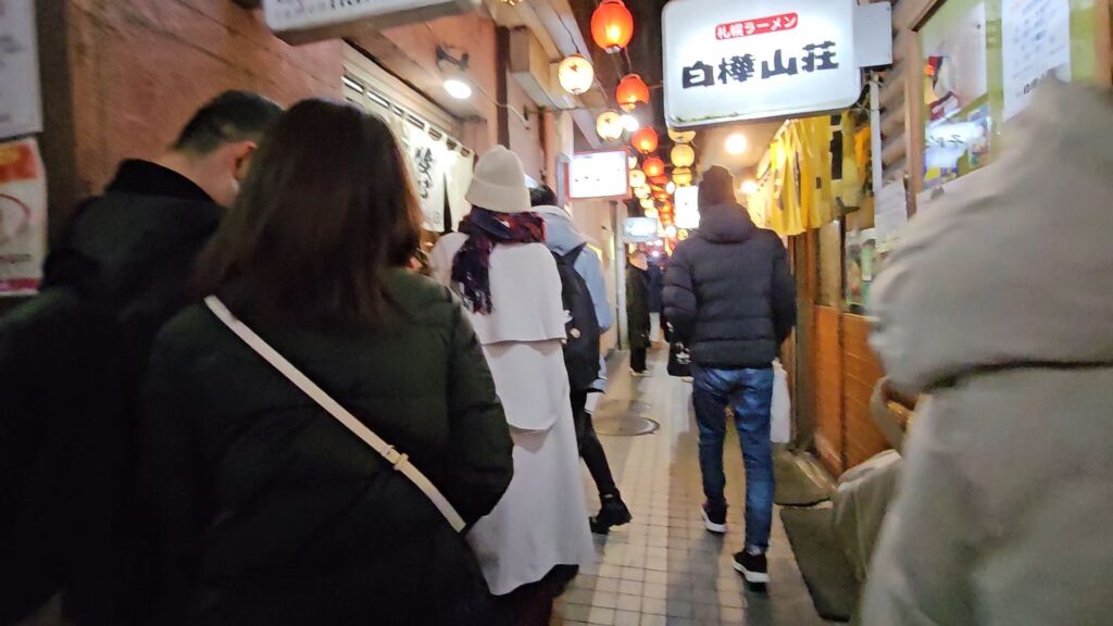 근처에 라멘 골목이 있다고 해서 그쪽으로 발길을 돌렸다. 라멘 골목은 좁은 건물들이 모여 있는 구역으로, 실내처럼 보이는 좁은 통로를 따라 들어가면 통로 양 옆으로 라멘집들이 가득 들어서 있다.