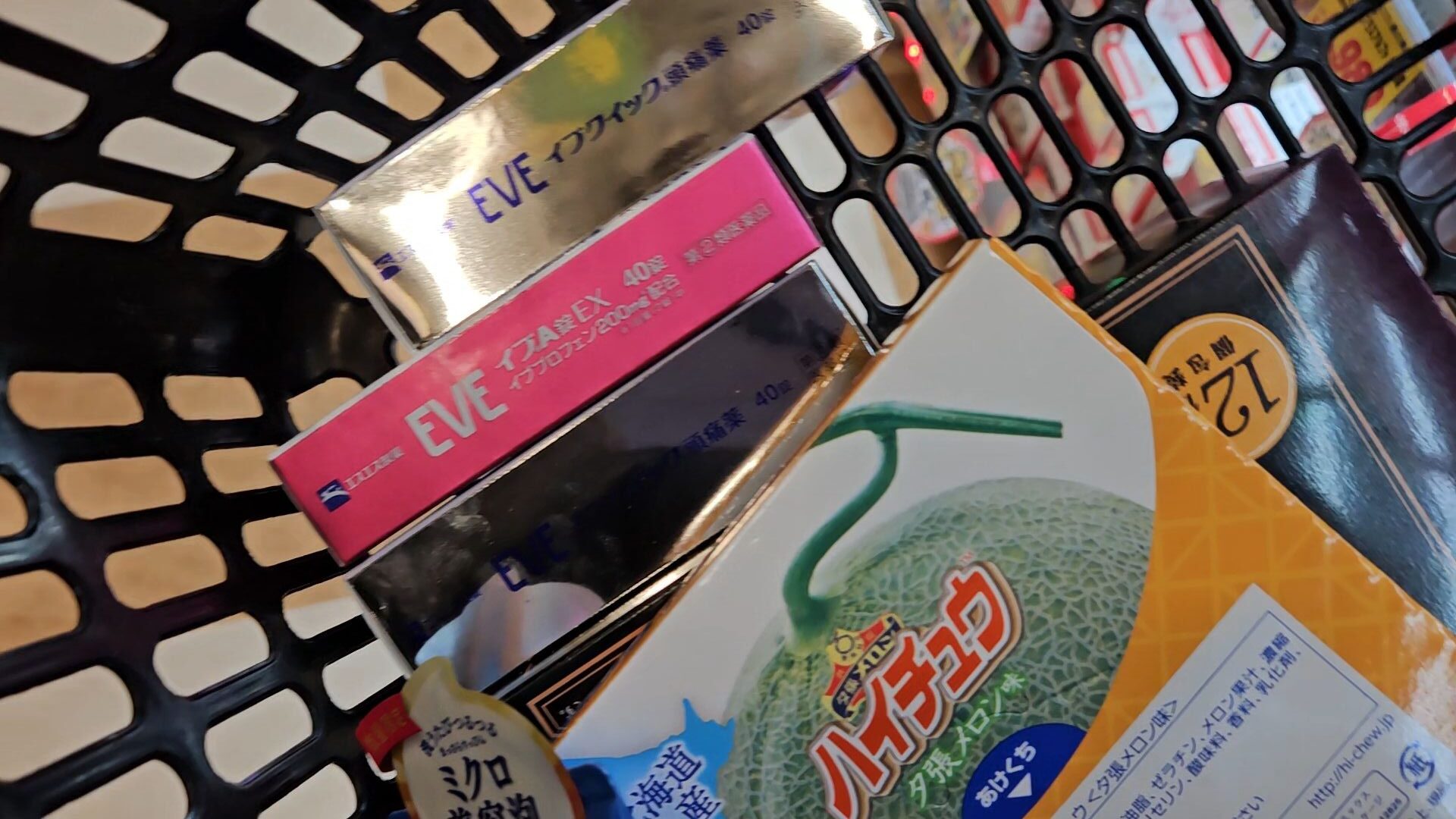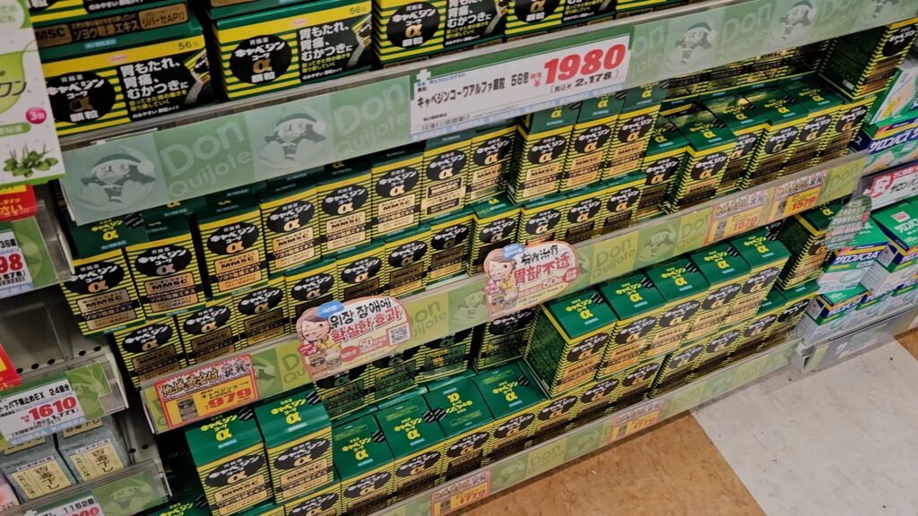 소위 “일본 돈키호테 쇼핑리스트”라고 하는 것들은 대부분 지하 1층~2층에 있다. 지하 1층에는 대부분 과자류, 1층은 화장품이랑 과자랑 약품, 2층은 생활용품류가 있었던 것으로 기억한다. 나는 씩씩하게 인파를 뚫고 하이츄, 폼클렌징, 과자, 카베진, 이브 진통제 등을 바구니에 담았다.