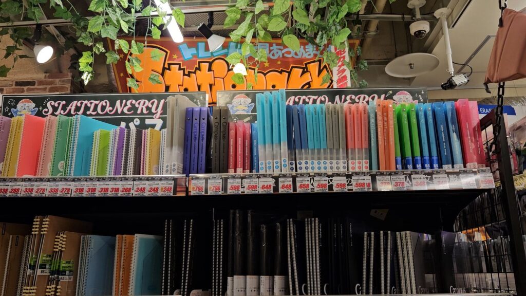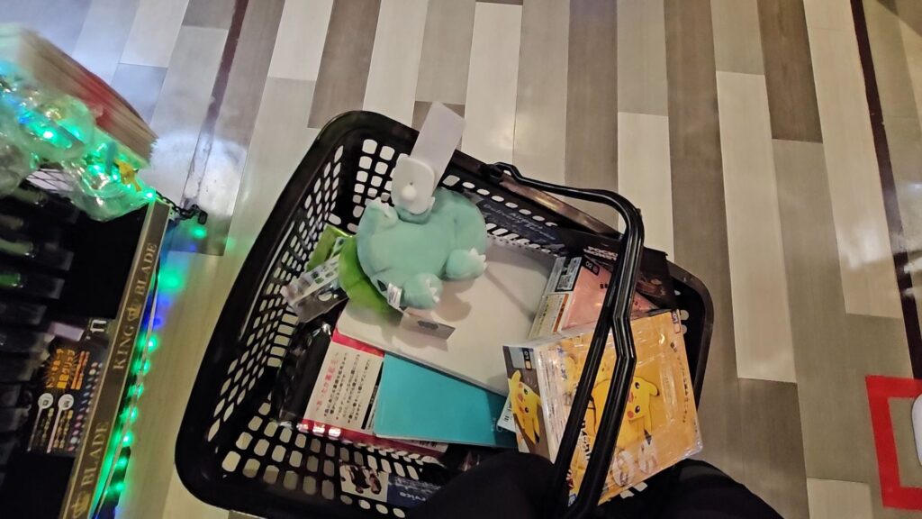 사실 문구류가 엄청 저렴한 느낌은 아니었는데, 그래도 일본에 온 기념품 겸으로 펜이랑 편지지랑 노트랑 포켓몬 굿즈 몇 개를 바구니에 담았다.