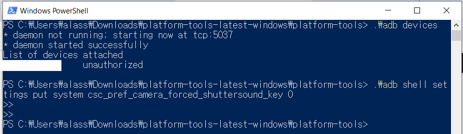 그래서 Setedit 없이 Google Platform Tools의 ADB(안드로이드 디버그 브리지)를 통해 카메라 촬영음을 강제로 없애는 방법을 정리해서 기록한다.