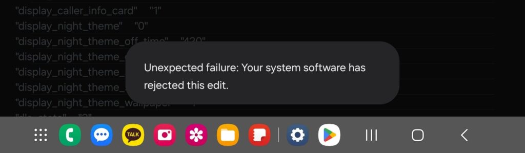 최근 폰 메인보드를 새로 갈았는데, 그러면서 안드로이드가 버전 업이 되었고 Setedit 어플을 통한 강제 촬영음 해제가 불가능하게 되었다. 계속 “unexpected failure: your system software has rejected this edit”라고 뜸 ㅜㅜ