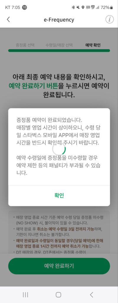 램프 예약 슨배님(?)에게 가르침을 받았다. 램프는 화요일을 제외하고 매일 7시에 입고되므로 그 때 스벅 어플로 스강신청을 해야 한다고 한다. 앱이 느리다고 여러번 클릭하거나 나갔다 들어오면 안 되고, 끈기있게 기다려야 한다고 한다. 또한 수령일은 가장 늦은 날짜로 지정해야 당첨 확률이 높아진다고 한다.
