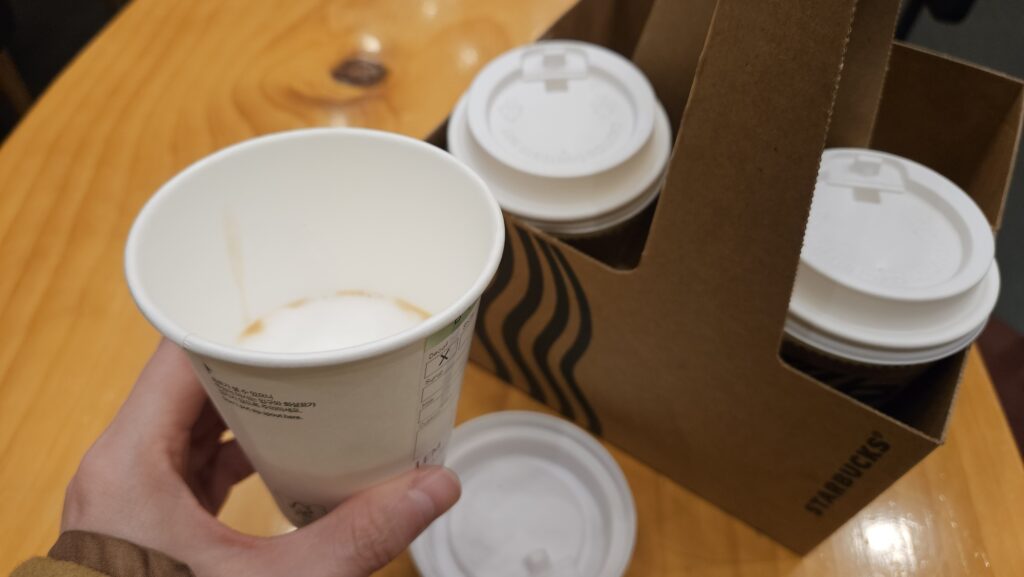 에스프레소 마끼아또 3700원 + 디카페인 옵션 300원으로 해서 4000원*3잔을 사면 딱 야식 식대 12000원이 채워진다! 뭔가 딱 떨어지는 액수가 나와서 뿌듯하다. 큰 의미는 없지만..ㅋㅋ