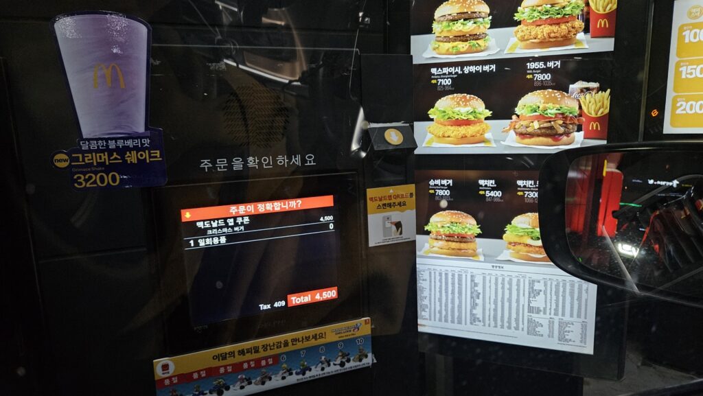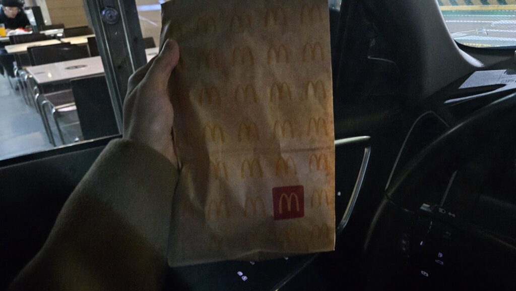 참고로 크리스마스 트러플 치즈 버거는 지금 맥도날드 앱에서 단품 40% 할인 중이다. 기분 좋게 결제하고 바로 드라이브쓰루로 달려갔다. 밤 시간의 드라이브쓰루라 그런지 차가 많이 없었다.