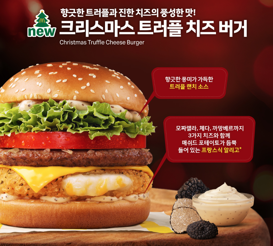 맥도날드에서 신제품으로 <크리스마스 트러플 치즈 버거>라는 것을 출시했다는 아름다운 소식을 접했다.
