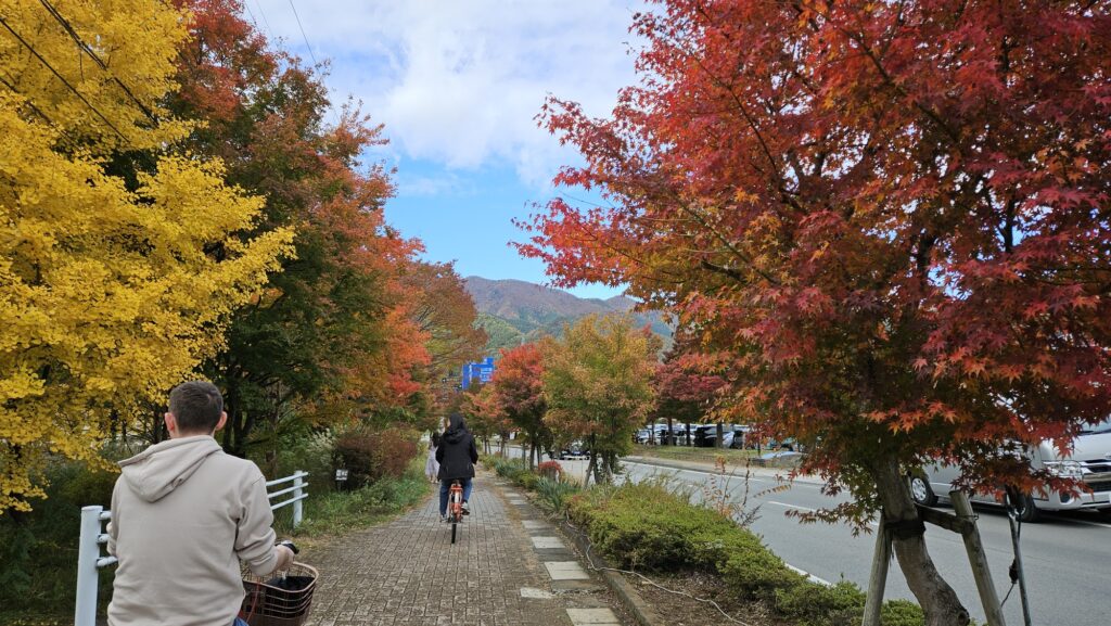 맑은 날 가와구치코 부근 자전거 트래킹을 할 생각이라면 11월이 그나마 마지노선이고 그 전(ex 10월, 9월, 8월,,)은 정말 비추다. 진 짜 진 짜 덥다. 경고했음..!