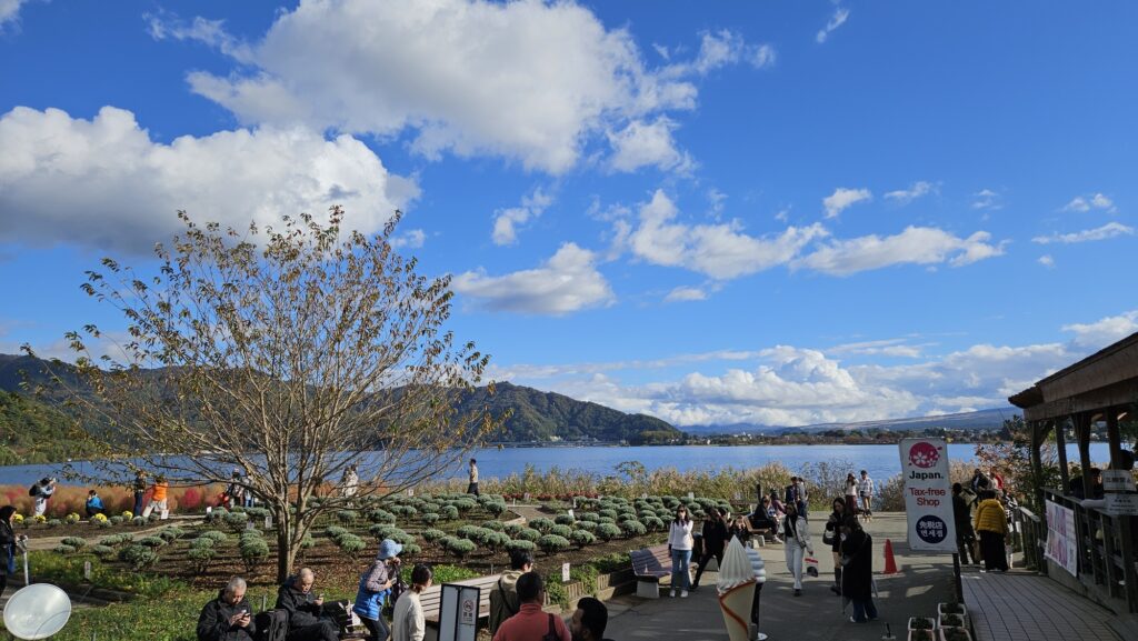 앞서 말했듯 후지산은 파란색이 잘 어울리는데, 맑은 날씨 덕에 하늘이 딱 맑고 예쁜 SkyBlue색을 띄었고, 가와구치코 호도 그 색을 함께 머금었다.