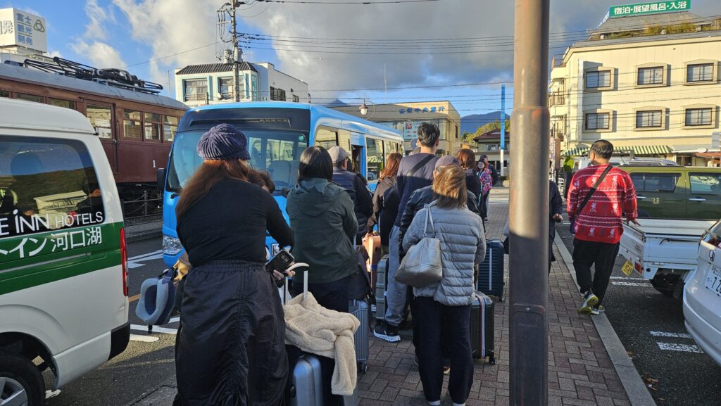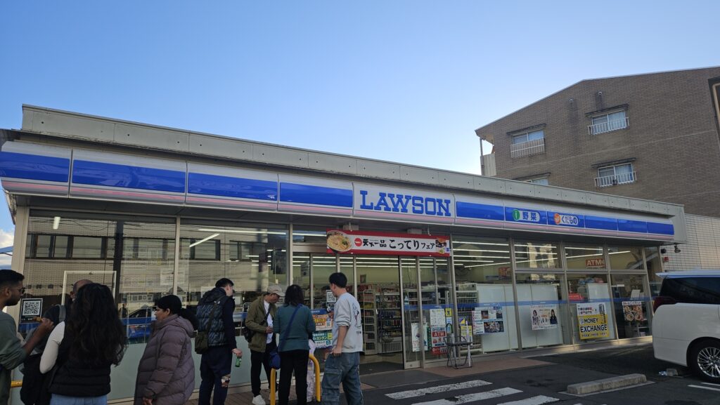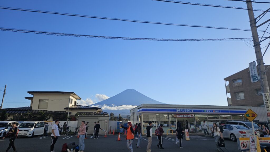 확실히 로손 편의점 건물 뒤에 후지산이 겹쳐보이는 구도가 잘 나오고, 로손 로고의 파란색과 후지산의 파란색이 잘 조화되었다. 괜찮은 포토스팟임에는 분명했다만,, 역시 사람이 너무 많아서 문제였다.