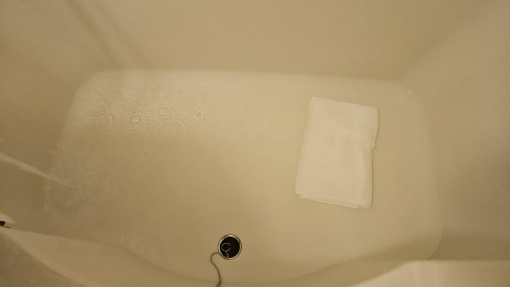 근육을 풀어주려 반신욕을 했는데, 엉덩이가 너무 아파서 도저히 욕조에 그대로 앉을 수가 없어서.. 수건을 깔고 앉았다.