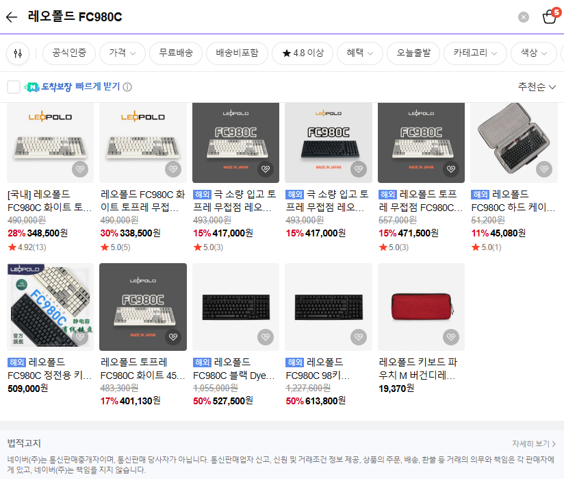 레오폴드의 토프레 무접점 키보드 FC980c 30g를 사용하고 있다.