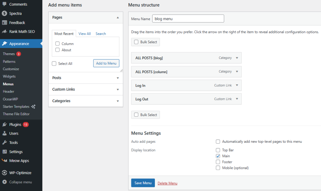 로그인/로그아웃은 사실 <기능>이라고 부르기도 어렵고, 그냥 워드프레스 로그인/로그아웃 페이지로 가는 버튼을 추가하는 작업만 해 주면 되는 것이었다. 따라서 나는 내가 사용하는 테마, <OceanWP>를 활용해서 이 버튼을 넣어보기로 했다.