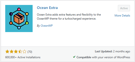보통 플러그인을 설치하면 Dashboard에 해당 메뉴가 생기므로, Plugins > OceanWp 를 검색하면 나오는 <Ocean Extra> 플러그인을 다운받아 보았다.