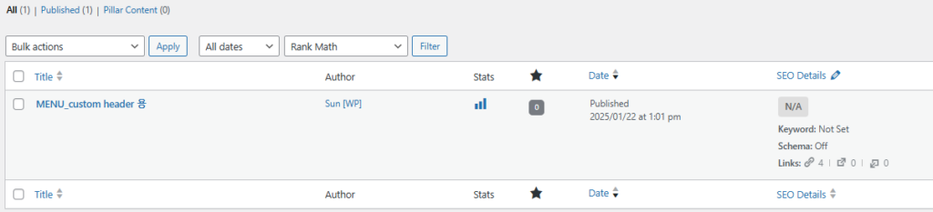 Customize > Header 에서 내가 만들어 놓은 헤더를 선택했다.
