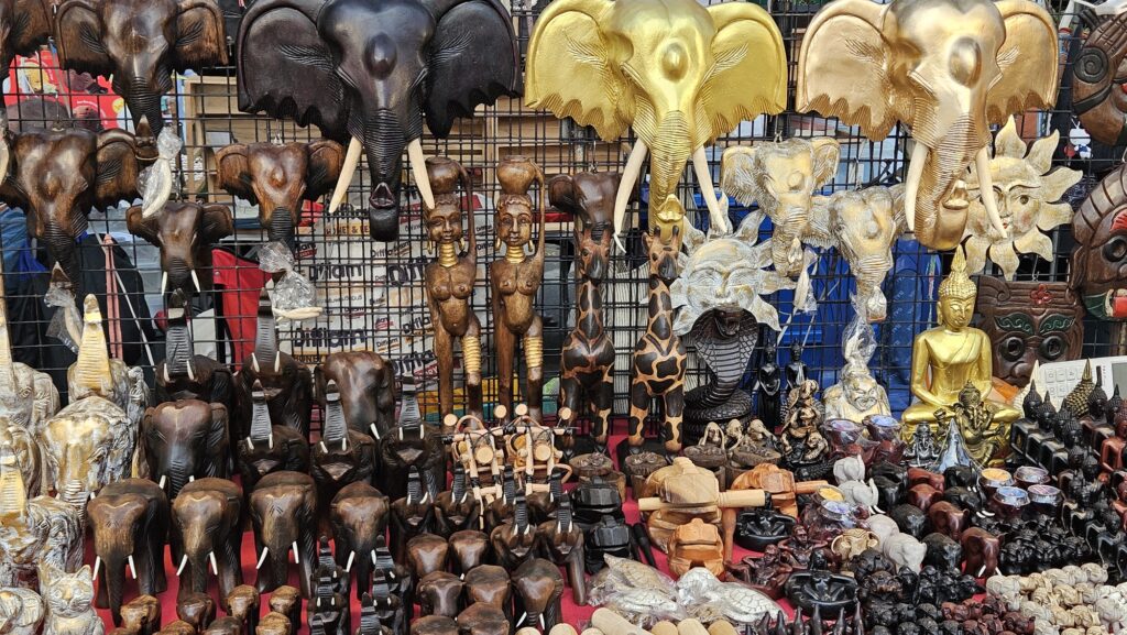 코끼리 모양 목조 공예품들
