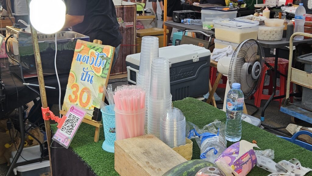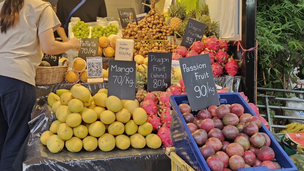 주스 한 잔에 80바트 가량 하는 가격으로, 이 시장에서 망고 1kg(약 2개)이 70바트 가격에 팔리는 점을 감안하면, 꽤 비싼 가격이긴 하다.