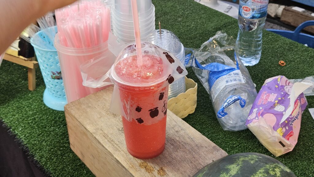 수박주스! 여기서 수박주스를 사서 한 잔씩 먹었다. 달고 맛있었다.