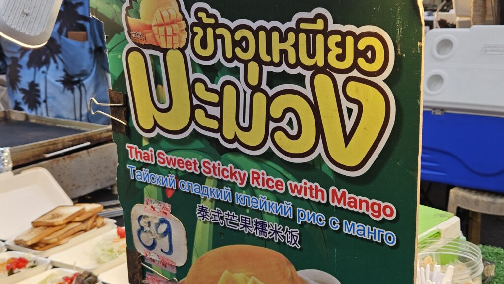 thai sweet sticky rice with mango – 망고를 밥 반찬으로 먹는 메뉴를 팔았다.