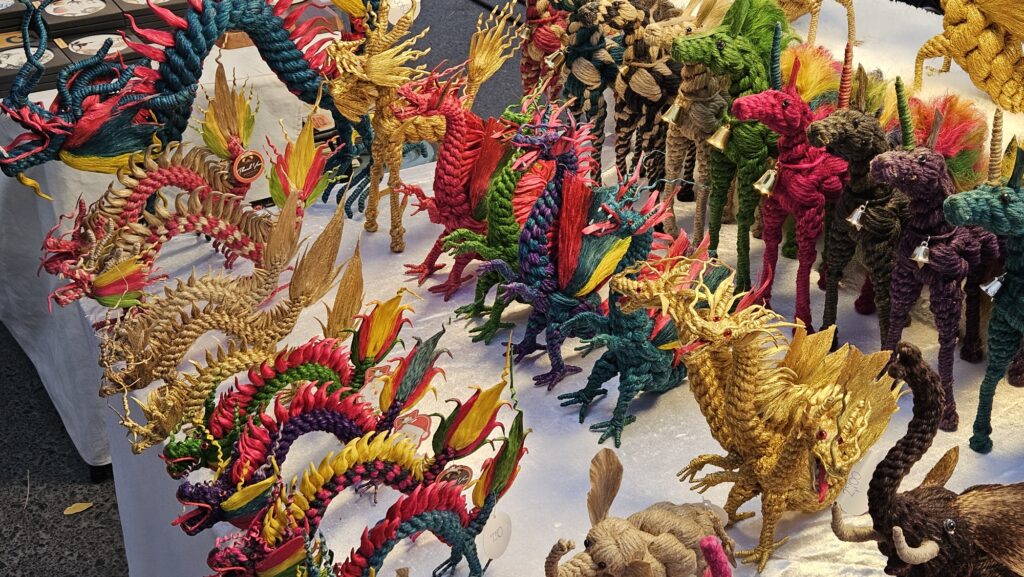 실 공예. 실로 거북이, 용 등을 만들었다. 신기하고 하나 갖고 싶었지만 참았다.