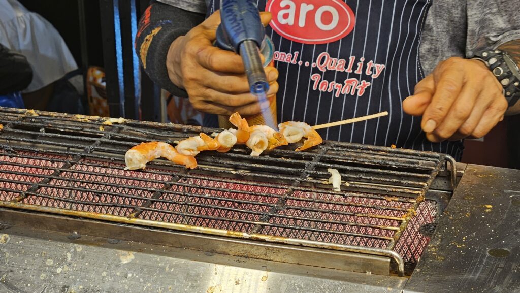 여기서 오징어구이랑 새우구이를 사먹었다. 나는 새우구이.