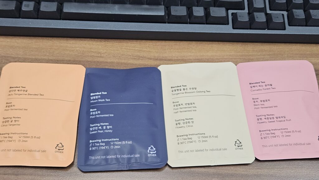 맨 오른쪽의 홍차가 들어있다고 쓰여진 <동백꽃이 피는 곶자왈>이야 당연히 알고 피했는데, 알고 보니 <후발효차>라고 써 있는 나머지 차 놈들도 죄다 카페인 포함이라는 것이다.