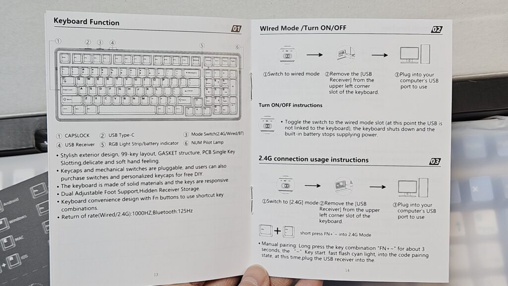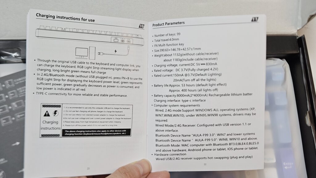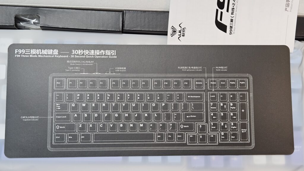 뚜껑을 열면 키보드랑 검정색/흰색 설명 종이가 나온다.