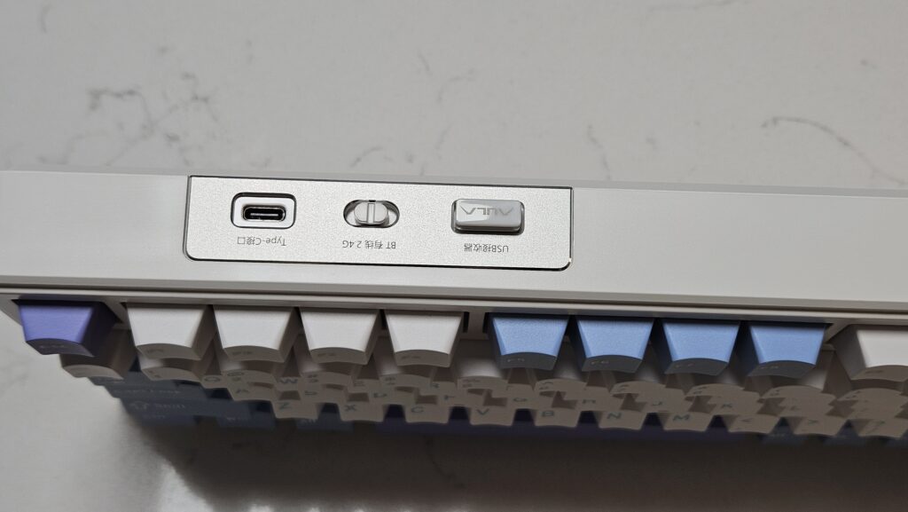 [연결 단자들 – USB 리시버, 무슨 버튼(?), C-type 단자]