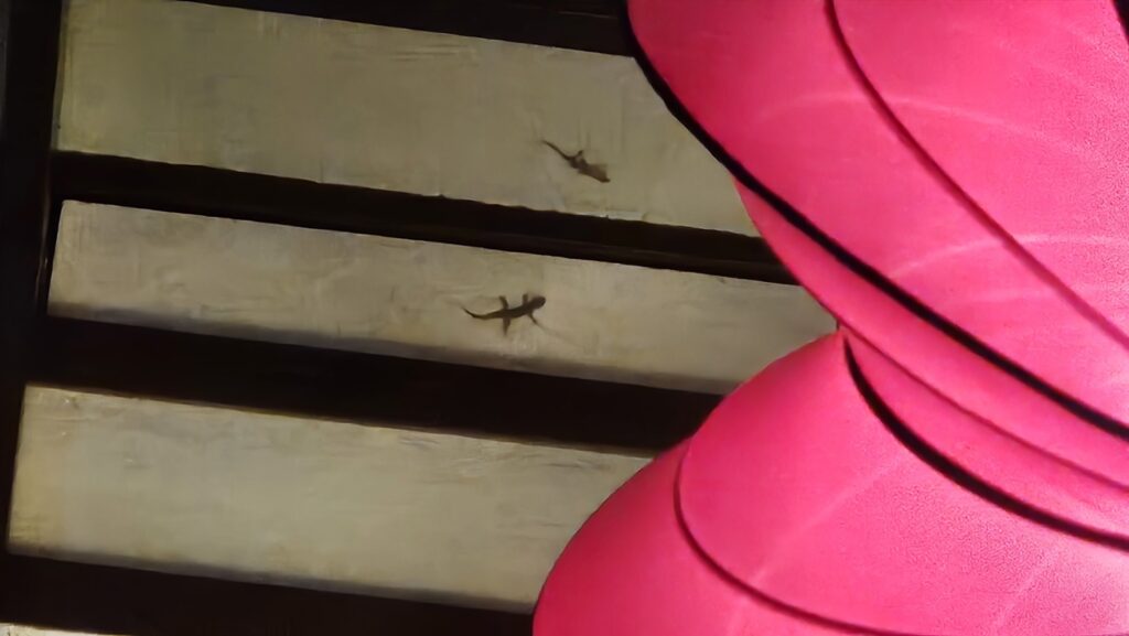 육안으로는 도마뱀이 꽤 잘 보였는데, 어두워서 그런지 사진으로는 도마뱀의 모습이 잘 잡히지 않아서 아쉬웠다. 하지만 실루엣만으로도 도마뱀의 귀여움을 잘 느낄 수 있었다.