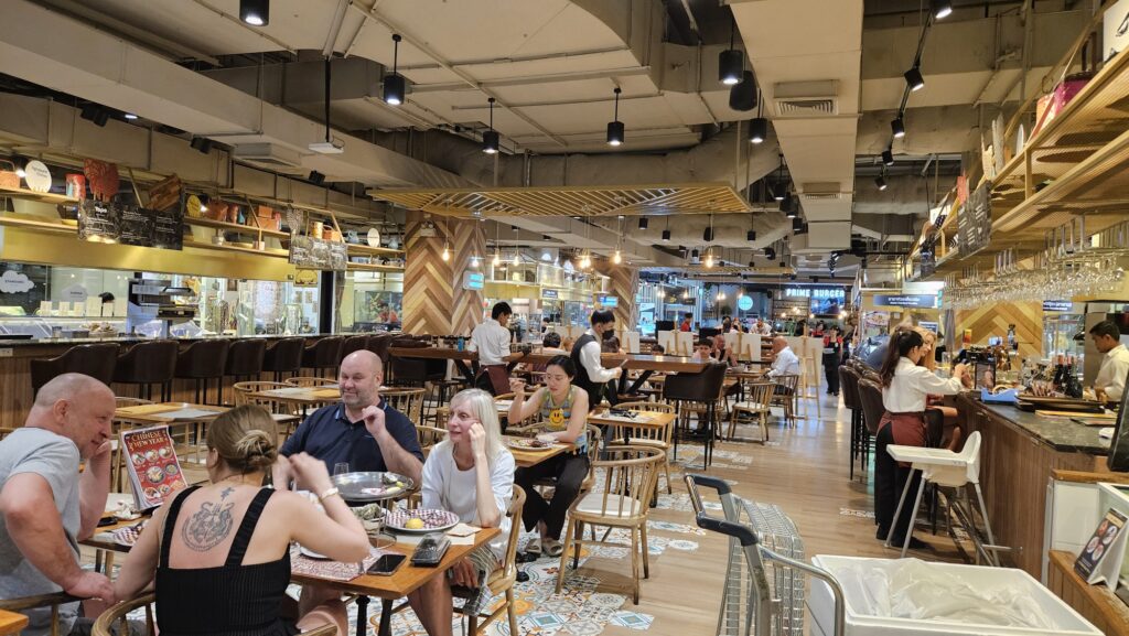 안에는 마트가 하나 있었고(자세히 돌아보지는 못 했지만 역시 관광객들이 대부분이었슴), 곳곳에 각종 쇼핑센터랑 식당, 카페, 상점 같은 곳들이 입점해 있었다. 입점된 브랜드는 유니클로, 스타벅스, 맥도날드 등 글로벌 체인들이 많았다. 유동인구도 현지인보다는 관광객이 많았다.