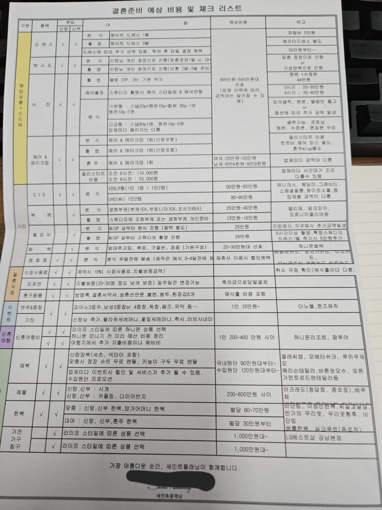여튼 그리고 플래너분에게 결혼준비 체크리스트도 받았다.. 복잡.