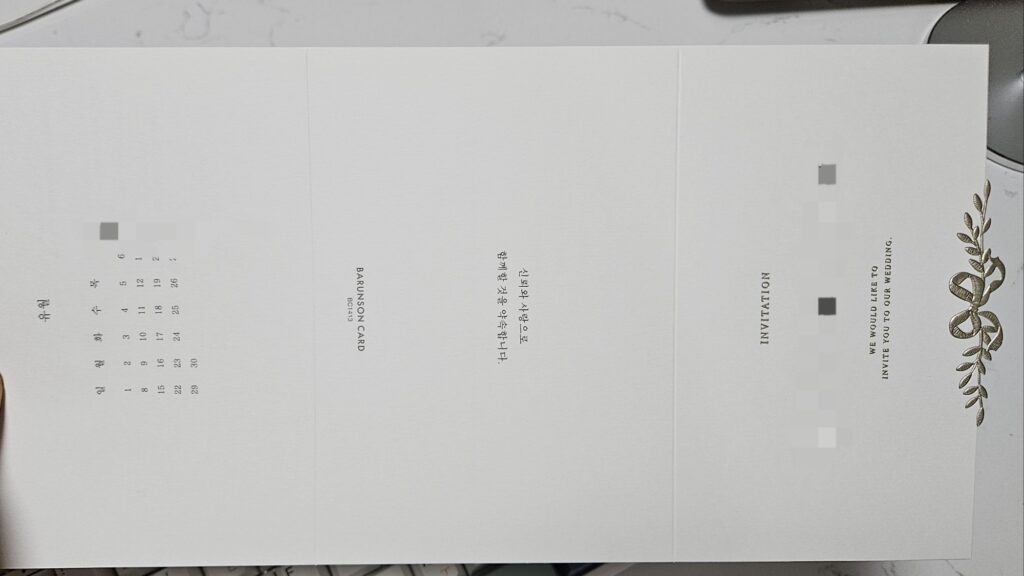 다만 이것마저도 번거로워서, 접으면서 3단이 아닌 2단 청첩장으로 할걸 이라고 후회를 좀 했다.