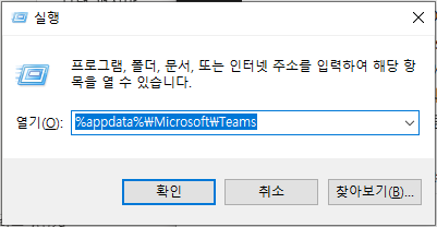 %appdata%\Microsoft\Teams 를 입력한 후 Enter.