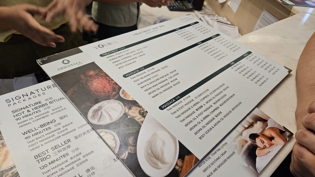 정실론 부근에서 마사지집을 찾아다녔다. 오빠와 나 둘다 파워 P 라서 예약 없이 구글맵만 보고 바로 갔는데, 유명하고 평점 좋은 마사지집 중 앞서 간 두 곳은 이미 예약 마감이었다. 세 번째로 방문한 여기 Orientala spa 에는 다행히 자리가 있었다.