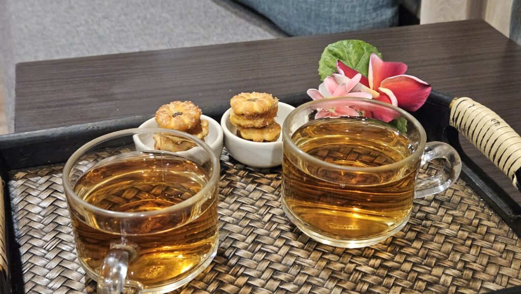 [마사지를 다 받으면 주는 따뜻한 차랑 쿠키. 쿠키는 그저 그랬다.]