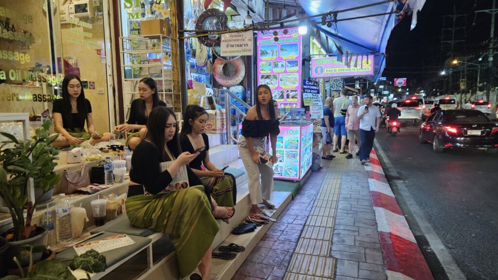 [마사지샵 호객여성들. 퇴폐마사지 샵 같다.]