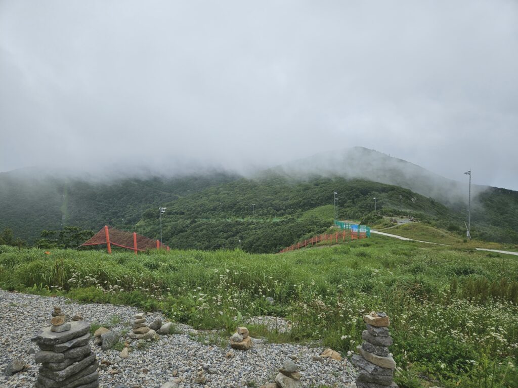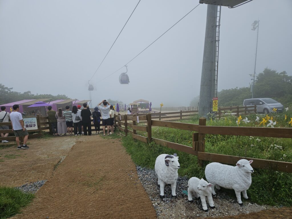 이후 케이블카에서 내렸는데, 산 위고 장마기간이라서 그런지 안개가 자욱했다.