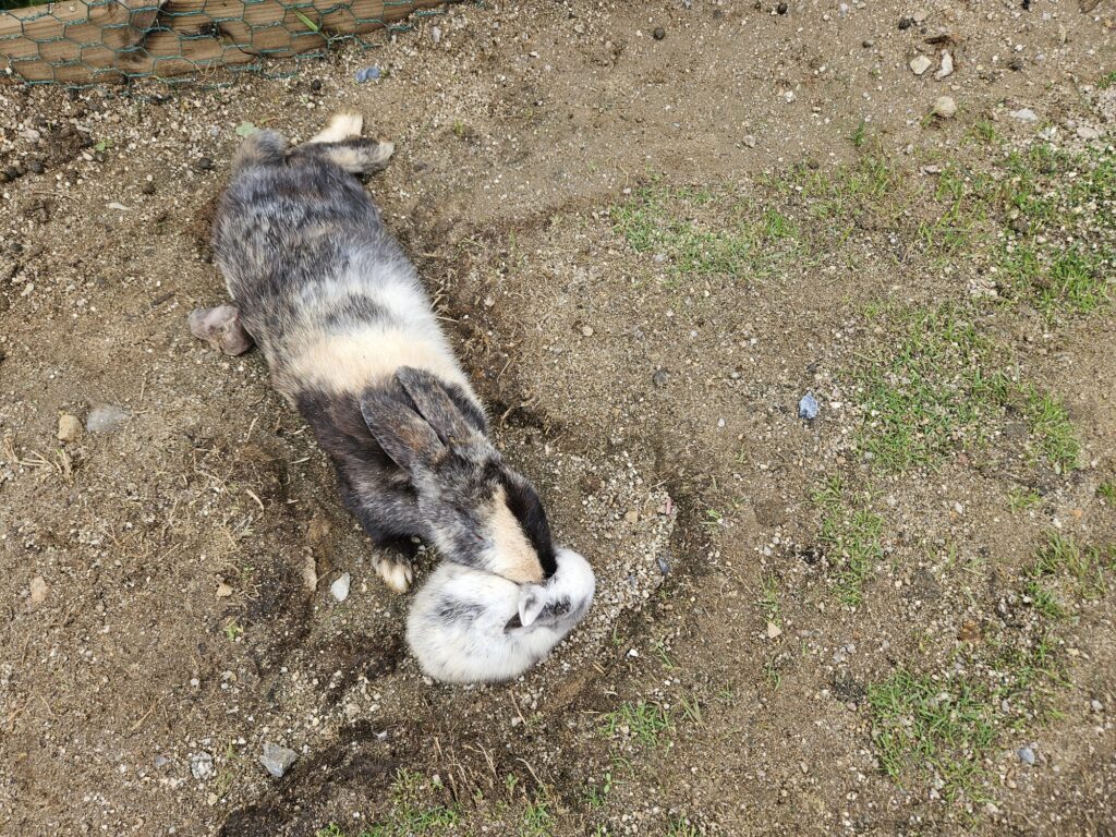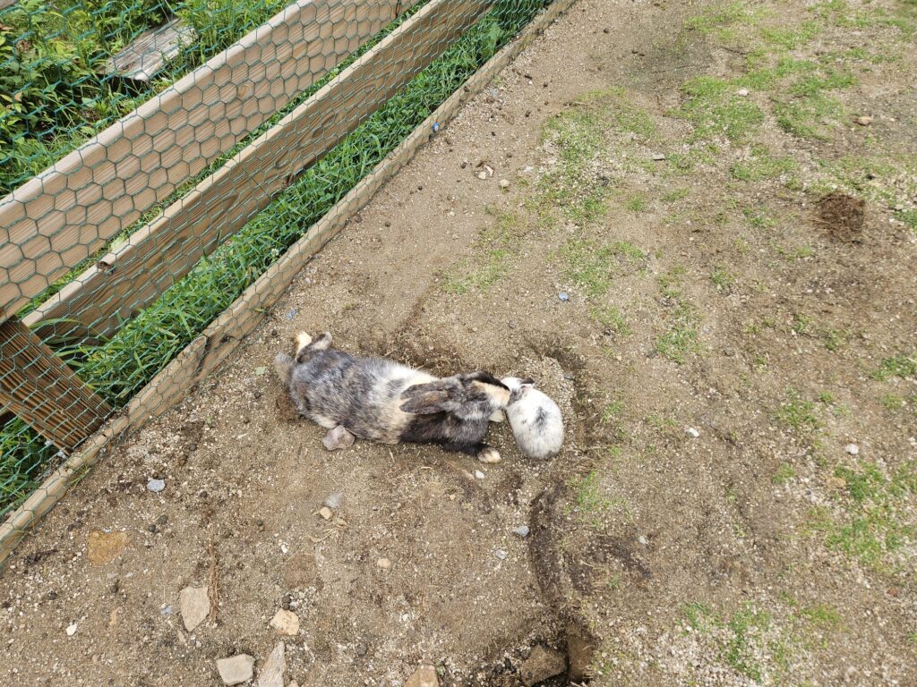 평화롭게 쉬는 토끼들을 이쁘다~손 으로 쓰다듬었다.