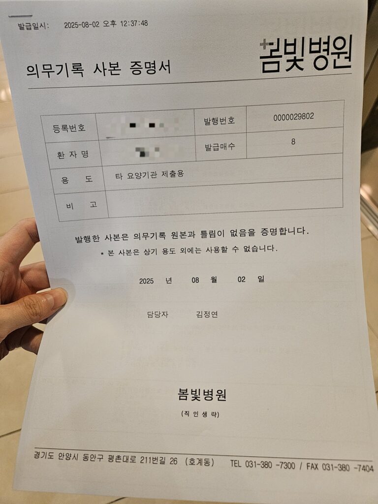 이후 진료의뢰서와 의무기록 사본을 봄빛병원 카운터에서 발급받았다.