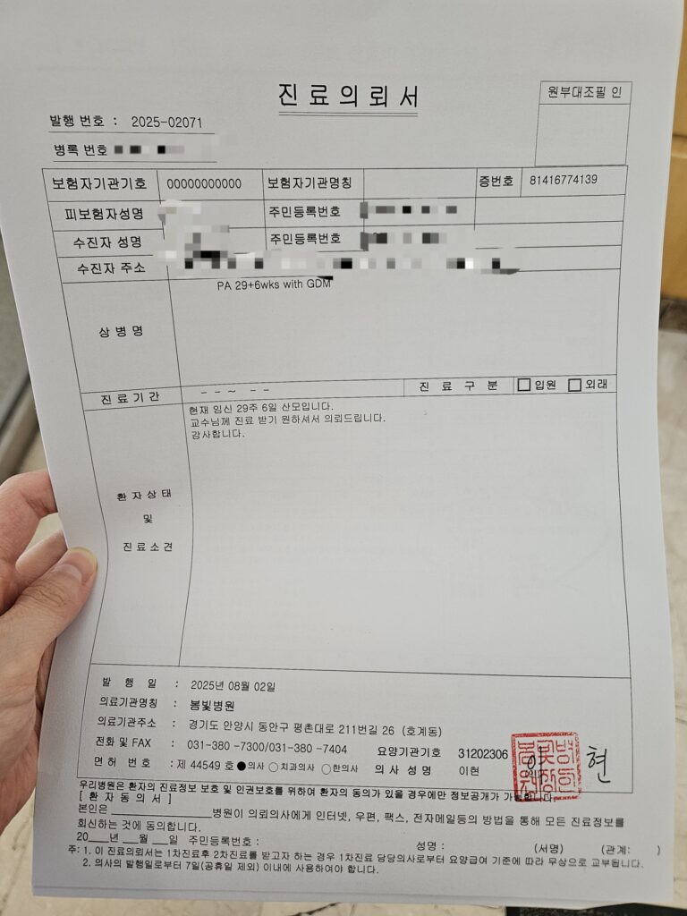 대학병원에서 건강보험 적용을 받으려면 진료의뢰서를 지참해야 한다. 따라서 원래 가던 봄빛병원에 진료의뢰서를 요청했다.