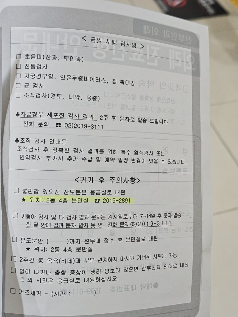 의욕 없는 간호사분들, 젊고 친절하지만 약간은 못 미더운 초음파 선생님