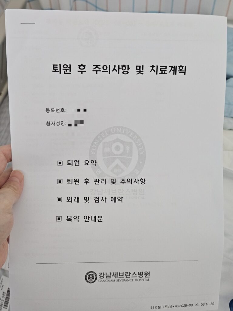 이후 수납을 하고(수납을 먼저 했던 것 같기도..), 퇴원수속을 하여 집으로 되돌아오게 된다.
