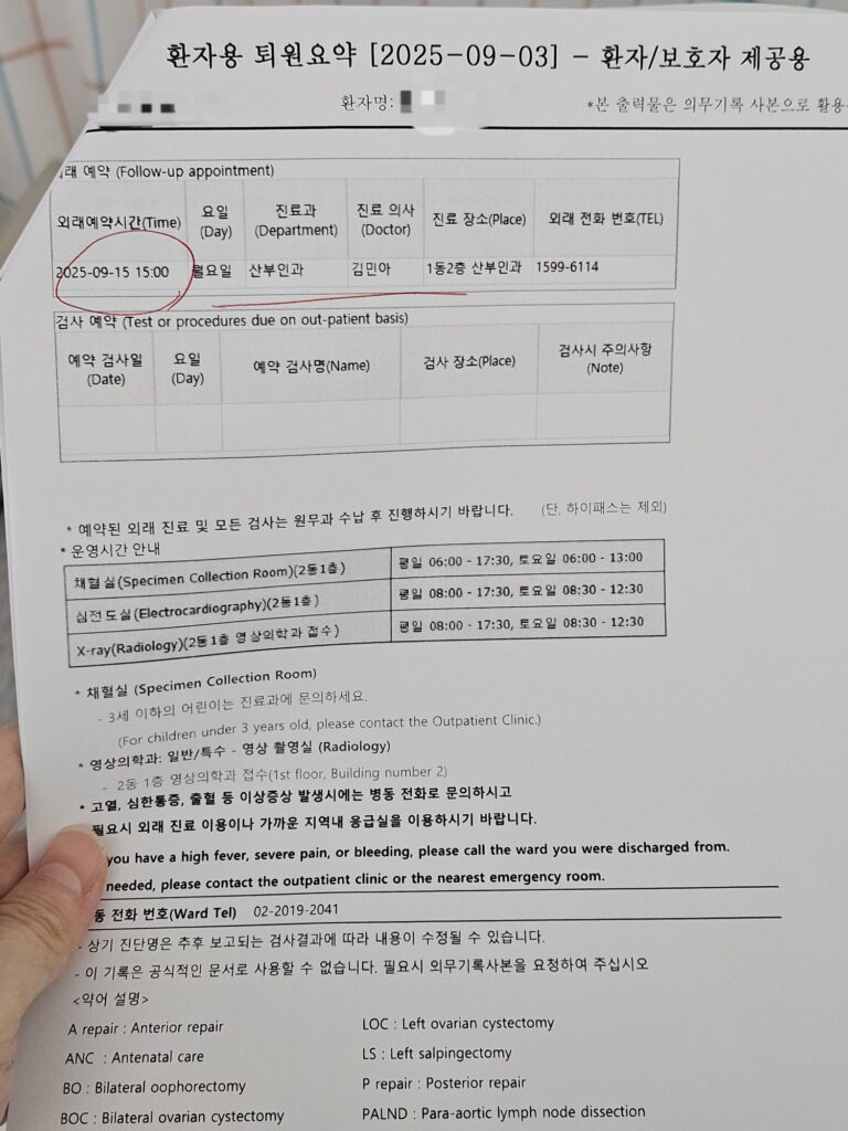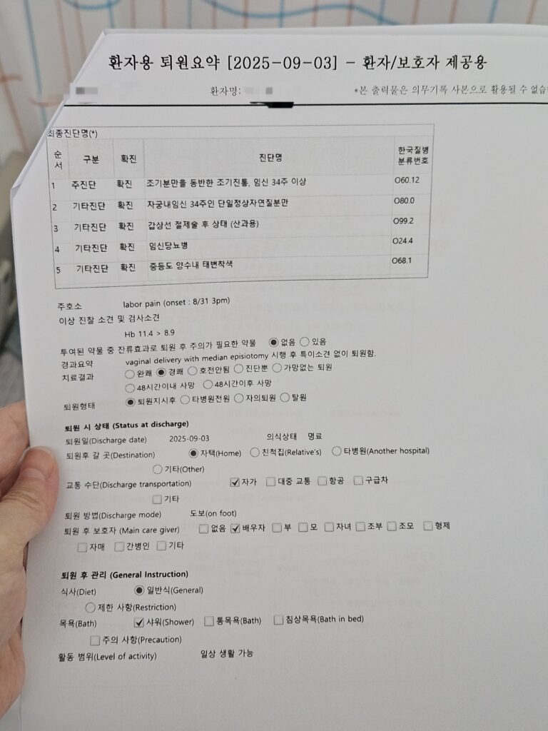 퇴원 전 날, 간호사들이 일부 서류(보험사 제출용 세부내역)는 전날 미리 발급신청이 필요하다고 안내했다. 나는 갑상선 암 때문에 태아보험을 들지 않았기 때문에 별도의 서류를 발급받지는 않음.