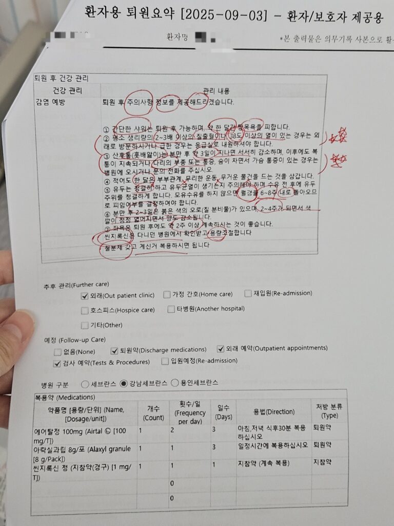 퇴원하는 날 오전에는 간호사에게 퇴원 관련 안내를 다시 받는다.