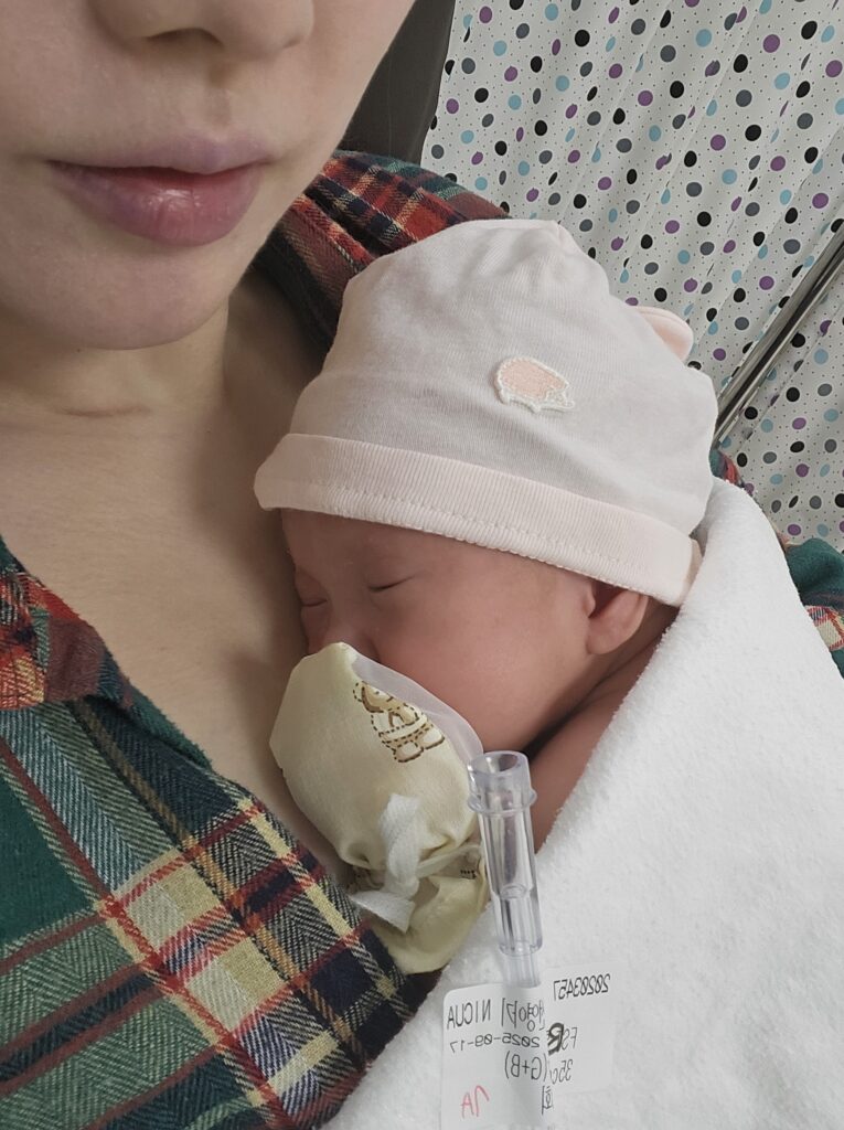 출산시 용을 쓰면서 태변을 흡입했다는거(내가 단비 나오는걸 오래 참아서 그런듯 ㅜㅜ) 외에는 특별한 이상 소견 없었으나, 그래도 미숙아는 기본적으로 경과 관찰이 필요한 부분이 있어서 일단 단비는 니큐로 옮겨졌다.
