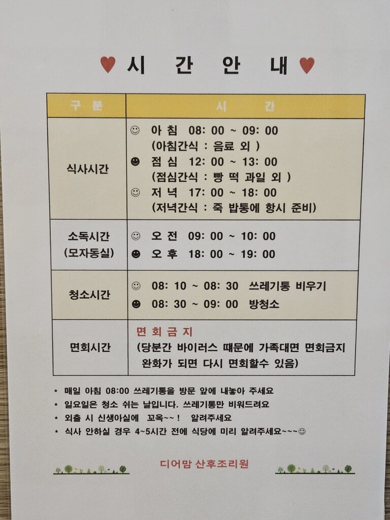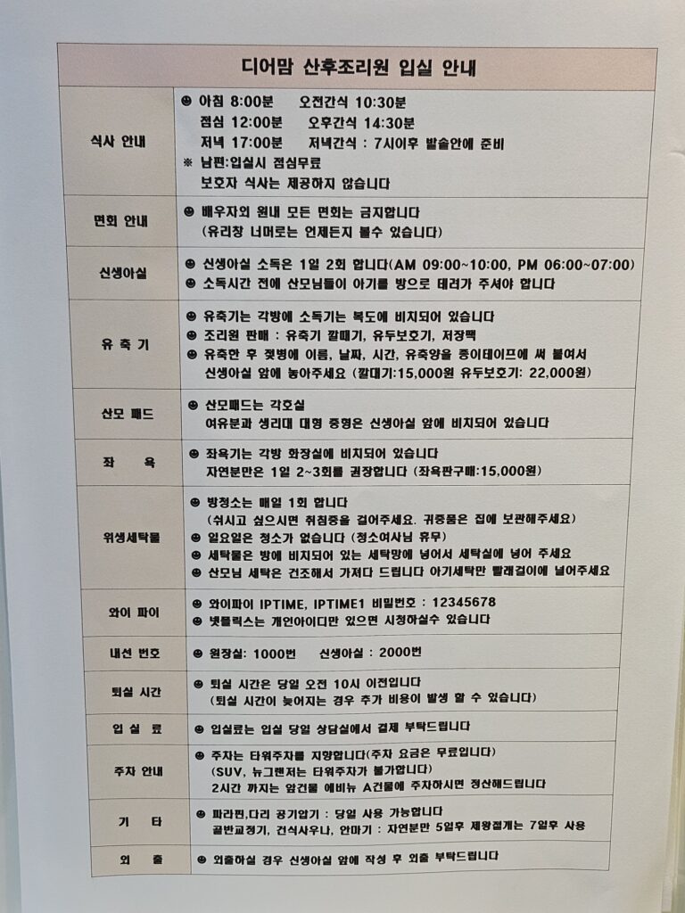 과천에는 산후조리원이 없기 때문에 나는 근처 안양에 위치한 디어맘 산후조리원에서 조리했다.