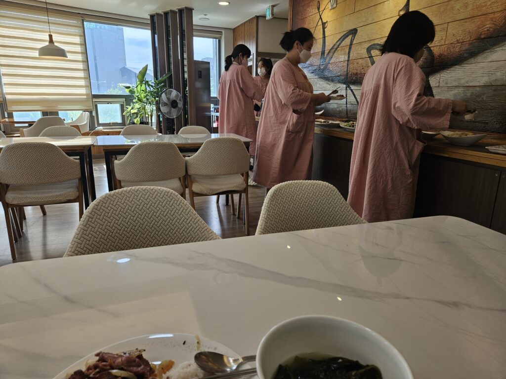 프로그램도 영양가가 없어서 산모들이 모일 일이 없고, 경산모 비율도 높아서 참여율이 낮다. 게다가 인원수에 비해 밥 먹는 로비가 넓어 다들 일정 거리를 유지하며 널찍히 떨어져 앉다 보니 더더욱 대화로 연결되기 어려웠다.