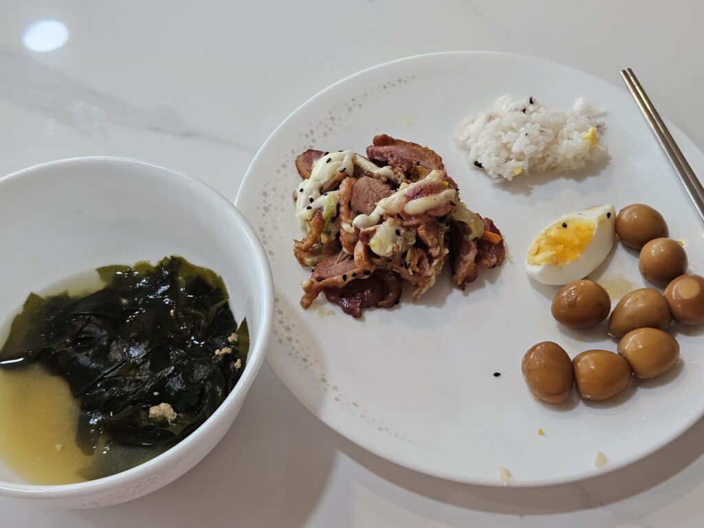 식사는 조리실에서 직접 조리하는데, 재료 활용을 잘 해서 메뉴 베리에이션을 잘 준다는 느낌이다.